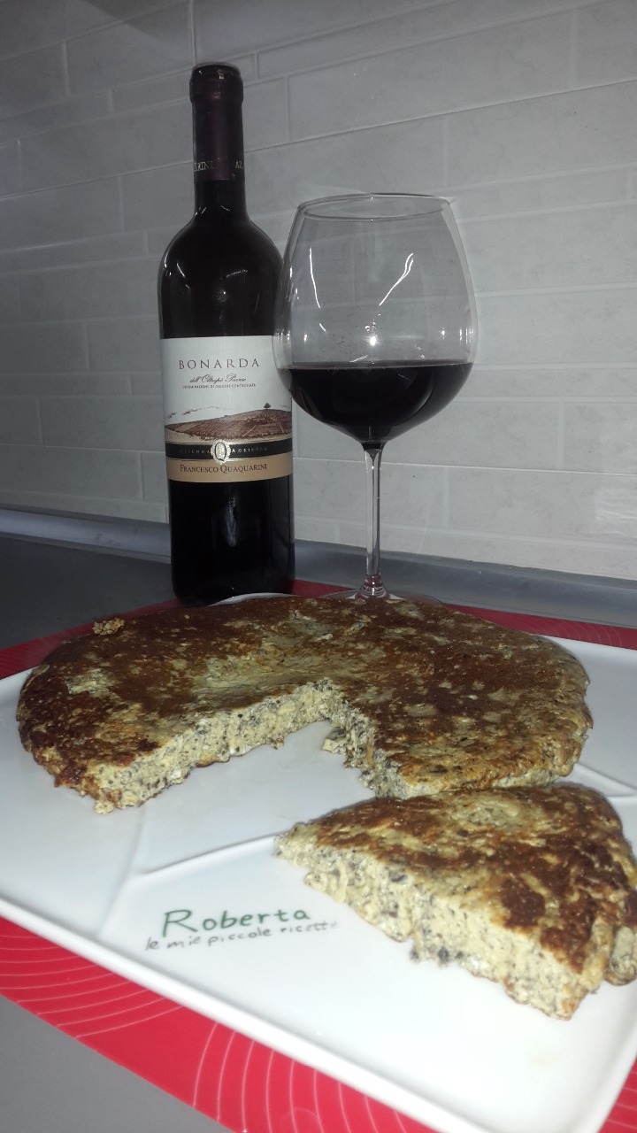 Trasferisci la frittata su un piatto da portata e servi in tavola. Il tutto io l'ho accompagnato da un buon vino Rosso Bonarda Francesco Quaquarini